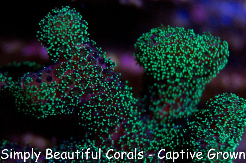 The neon green stylophora is simply stunning. A fabulous florescent green with a cluster growth pattern that is not as tight as the SBC Neon Green Stylophora. Eyecatching to say the least!