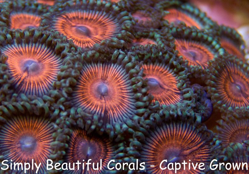 This zoa simply glows in the aquarium light. A beautiful reddish orange disk with a styrated golden/tan color skirt.