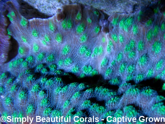 The hollywood stunner is a fast growing chalice and is a real beauty with its neon green eyes. It does not require high lighting and prefers to be kept in moderate flow. This is a relatively easy coral to keep and propagate.