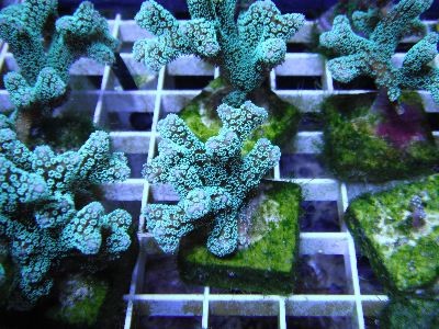 The ORA Green Birdsnest has branches with rounded tips and long brilliant green polyps. When polyps are fully extended this coral has a very fuzzy appearance. Our colony seems to prefer moderate to high lighting and flow.