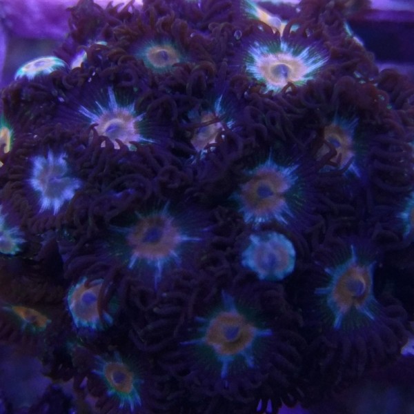 A different morph from the normal zoanthid. The Pinwheel has a no circle on the disk, but instead an middle rim that radiates out like the sun.